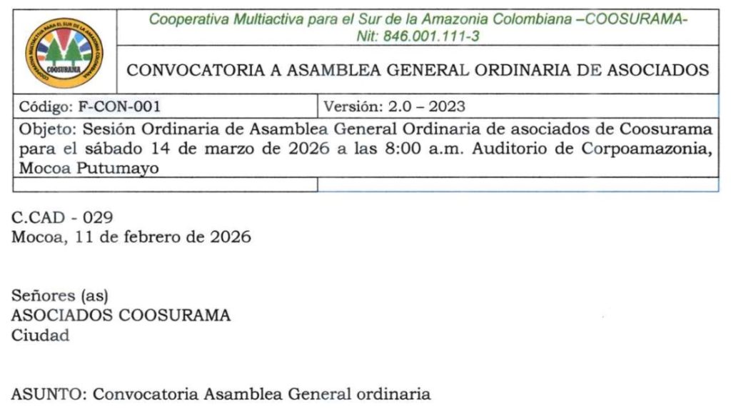 Constituida legalmente como cooperativa mediante Resolución No. 0481 del 20 de marzo de 1998. Integrada fundamentalmente por empleados, trabajadores y contratistas de la Corporación para el Desarrollo Sostenible del Sur de la Amazonia, “CORPOAMAZONIA”.